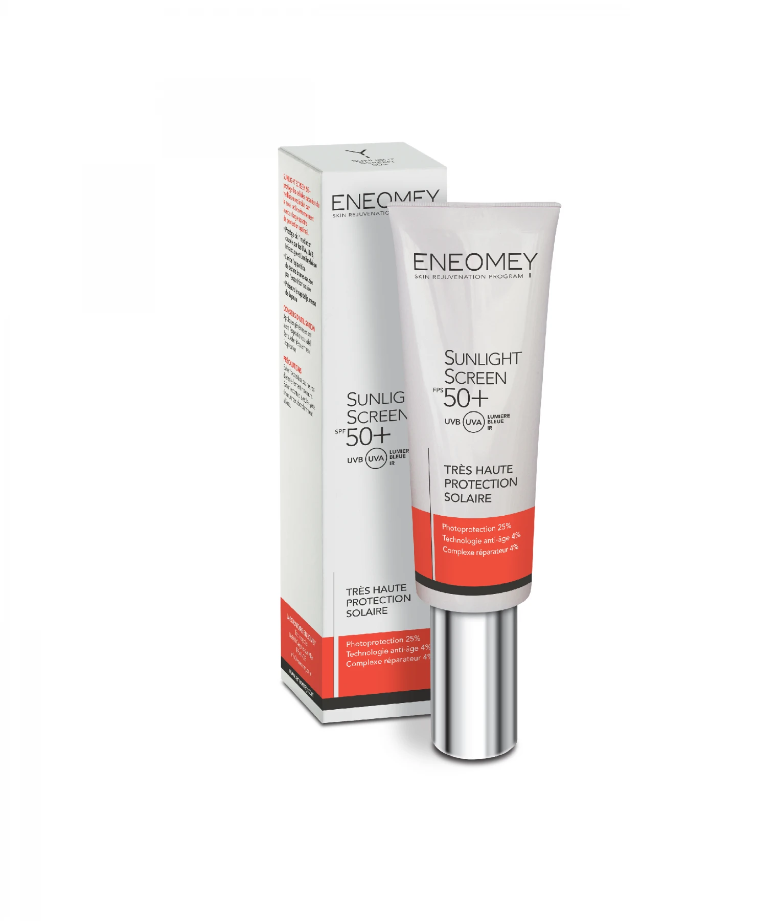 Bent u het zat om stinkende en vette zonnebrand op uw gezicht te smeren? Ontdek de Eneomey Sunlight Screen 50+ een verzorgende en hydraterende zon lotion. Deze zonbescherming vermindert en voorkomt fijne lijntjes en helpt pigmentvlekken te voorkomen.